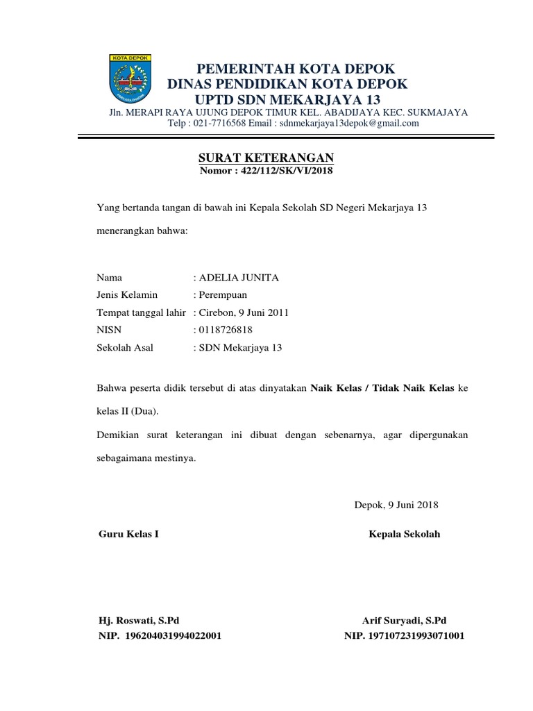 Surat keterangan tidak naik kelas. We did not find results for: Maybe you would like to learn more about one of these? Check spelling or type a new query.