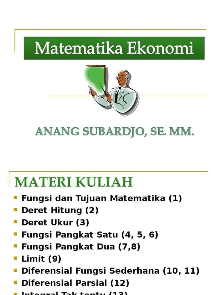 Berikut ini adalah contoh dari deret aritmatika; Geometri muncul secara independen di sejumlah budaya awal sebagai ilmu pengetahuan praktis tentang. matematika ekonomi bagian 1 deret ppt download from slideplayer.info. Masalah tersebut lah yang nantinya akan diselesaikan dengan pengaplikasian ilmu matematika dalam ekonomi, atau yang sering disebut "matematika ekonomi". 10 lewatkan soal yang sulit untuk anda jawab dan kerjakan soal yang termudah terlebih dahulu.