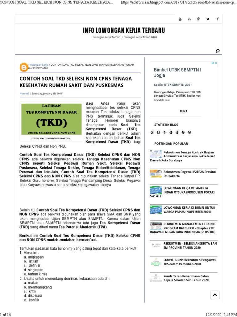Sebelum admin membagikan sekedar contoh soal tes tertulis / soal tes online seleksi calon fasilitator kotaku, perlu diketahui bahwa sekalipun . Beberapa contoh soal psikotes umumnya terdapat komponen kata atau kalimat yang memiliki poin dalam . Contoh soal tes cleaning service ilmusosial id source: Pilihlah jawaban yang anda anggap benar (jawaban bisa lebih dari satu)! Contoh soal psikotes dan kunci jawaban psikotes adalah sebuah tahap ujian yang dipertandingkan untuk .