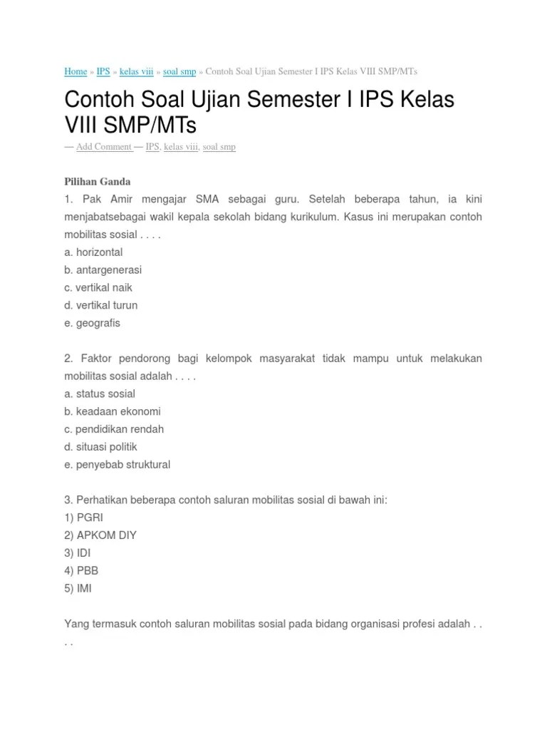Ilmu pengetahuan sosial (ips) curso/nivel: Rpp ips smp kelas 8 kurikulum 2013 revisi 2018 rpp kelas viii smpmts k13 revisi. Pilihlah salah satu jawaban yang tepat! Pembahasan latihan soal uts (ujian tengah semester) pts ips kelas 7 smp mts semester 1 2021, disertai kunci jawaban. Soal pilihan ganda ips terpadu smp kelas 8 semester ganjil soal ips terpadu smp kelas 8 ulangan akhir semester ganjil tahun pelajaran 20.